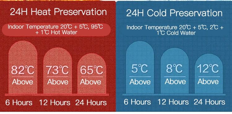Desempenho de isolamento térmico: 6-12 horas