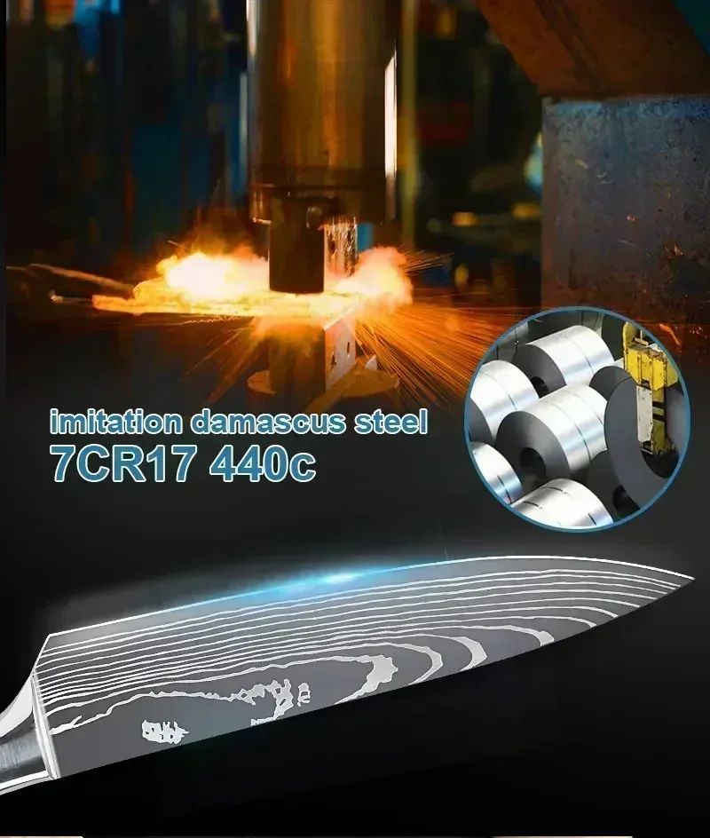 a superfície do padrão de Damasco a laser, muito bonita, bom acabamento, afiada, mantenha sua cozinha longe da faca romba e aproveite seu tempo na cozinha.