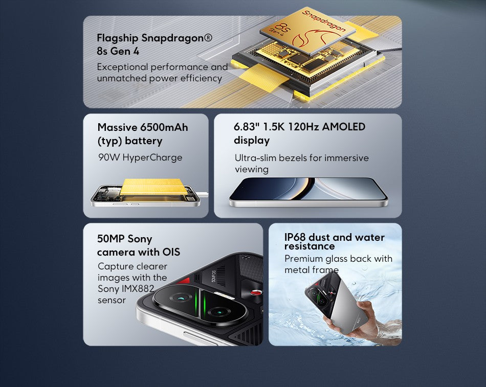 SO-----------Alimentado por Xiaomi HyperOS 2, suporte multilíngue e Google Play, sensor de impressão digital na tela, desbloqueio facial AI, proteção IP68 contra poeira e água, alto-falantes duplos